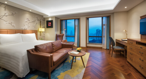 Modern & Stylish in design, spacious & bright. 40 sqm. Floors 17–21, queen & twin bedrooms available. Bathrooms are equipped with TOTO Washlets, separate standing showers & bath tubs, & L'Occitane toiletries. In-room satellite TV with international channels, custom designed furniture, Wi-Fi, and more. . .